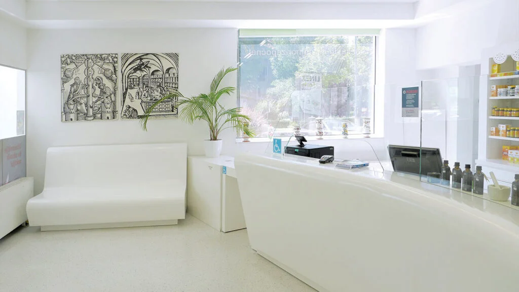 Without a doubt, Kerrock is a material that fully meets the specific needs of medicine and pharmacy. Pleasant and warm to the touch, non-porous, and extremely easy to clean and maintain.