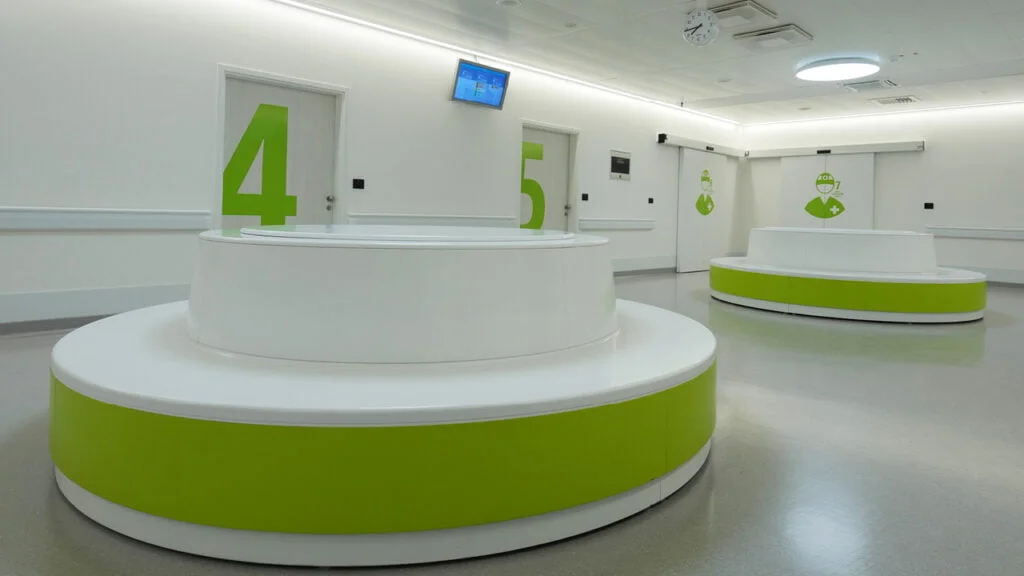 The extensive colour palette, from classic to non-traditional colours, inspires and attracts attention, and helps designers and architects in creating modern projects for hospitals, operating rooms and laboratories.