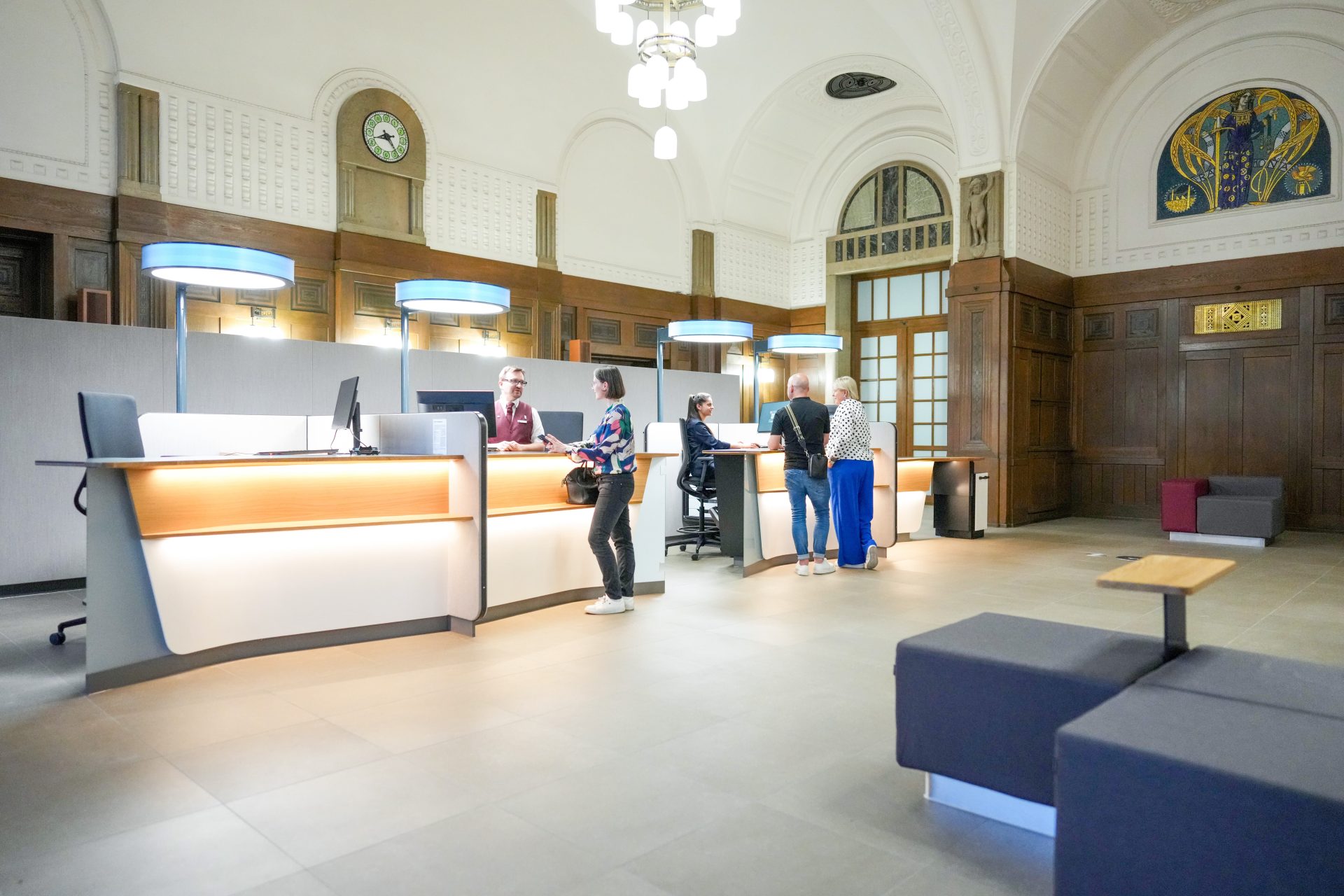 The waiting area has also been reimagined, providing a more comfortable space that caters to a wide range of needs, including enhanced accessibility for travelers with mobility challenges. Notable features include adjustable service counters for wheelchair users, an induction loop for hearing aid wearers, tactile floor strips, and overall reduced waiting times.