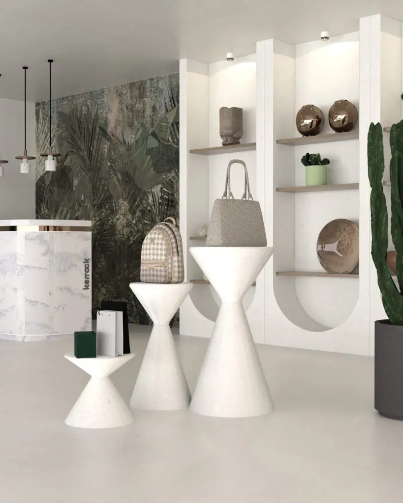 • Larger objects made of Kerrock (facades, cladding) are easily transformed into different products, furniture.